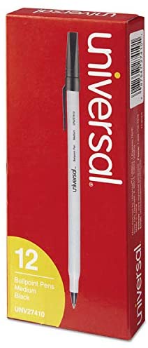 12 pcs Universal Economy Ballpoint Stick Oil-Based Pen Medium 1mm, Black Ink, Gray Barrel