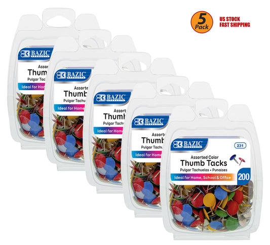 1000 Assorted Colored Thumb Tacks, Multi-Color Thumb Tacks - Smooth solid heads insure safety and comfort