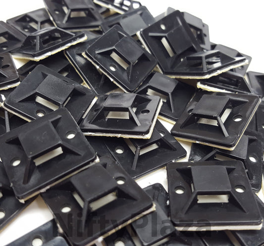 NiftyPlaza Cable Ties Mounts, Self ADHESIVE Clips Base Nylon, (20mm x 20mm) - 100 Black Cable Tie Mounts