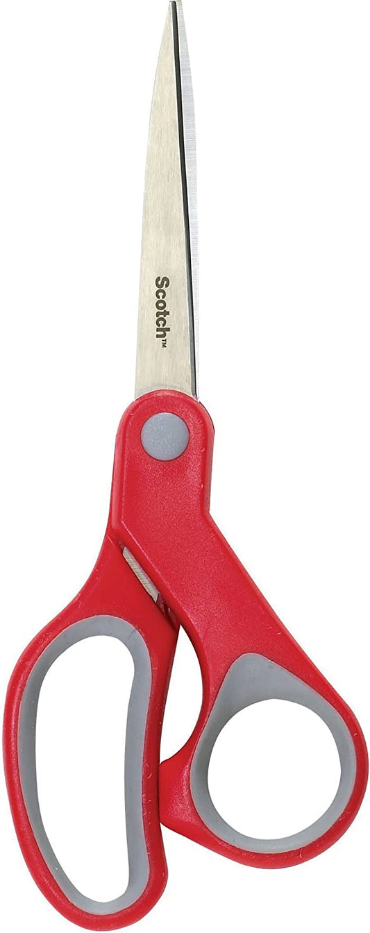 Scotch Multi-Purpose Stainless Steel Scissor, 8-Inches Red and Grey Handle Light Duty Cutting Blades