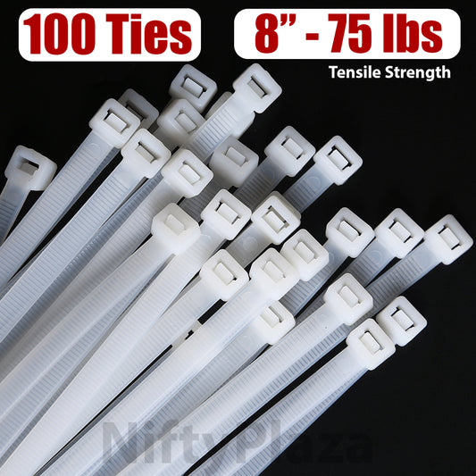 NityPlaza 8 Inch Cable Ties, 75 lb Tensile Strength, UV Weather Resistant, 100 pcs Nylon Wrap Zip Ties