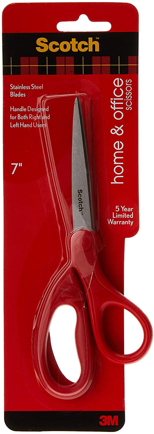 Scotch Household Scissor, 7-Inches Red Handle Light Duty Cutting Stainless Steel Blades