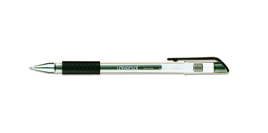 Universal 12 pcs Comfort Grip Stick Gel Pen, Medium 0.7mm, Black Ink, Clear Barrel fade-resistant Ink