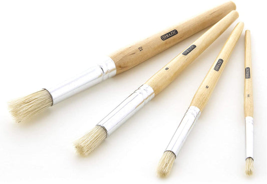 BAZIC Round Natural Bristle Stencil Brush Set, 4 Count Great for Acrylic Oil Watercolor Gouache Body Painting Skin Art