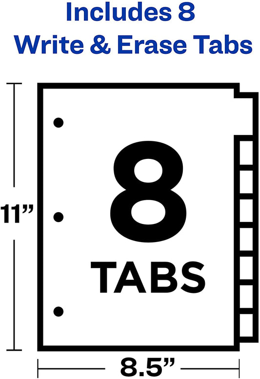 Avery 8-Tab Binder Dividers,1 Set, Write and Erase Multicolor Big Tabs, 3-hole punched and ready for Use