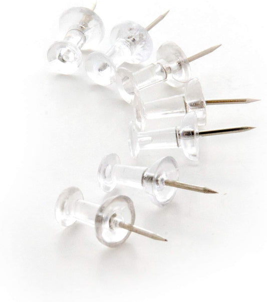 100 Clear Transparent Push Pins - Drawing, Cork Board, Notes, Maps