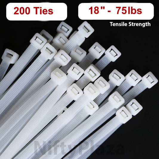 18 Inch Cable Zip Ties - 200 Pack - 75 lbs TENSILE Strength Premium Grade, UV Weather Resistant, HEAVY DUTY