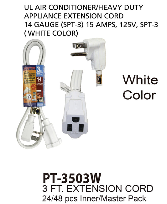 POWTECH Heavy duty 3 FT Air Conditioner Major Appliance Extension Cord UL Listed 14 Gauge, 125V, 15 Amps, 1875 Watts