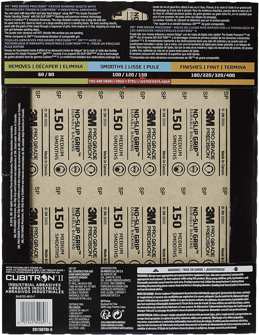 3M Pro Grade No-Slip Grip Advanced Sandpaper, 9 X 11-in, 150 Grit, 3/Pack, 25150P-G