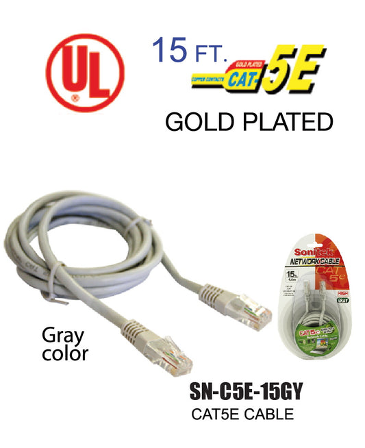 TriSonic 15 ft UL CAT5 Grey Networking Cable RJ45 LAN DSL High Speed Ethernet Network Cable