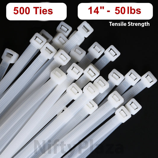 NiftyPlaza 14 Inch Cable Ties, UV Weather Resistant, 50 LBS Nylon Wrap Zip Ties, 500 Zip Ties