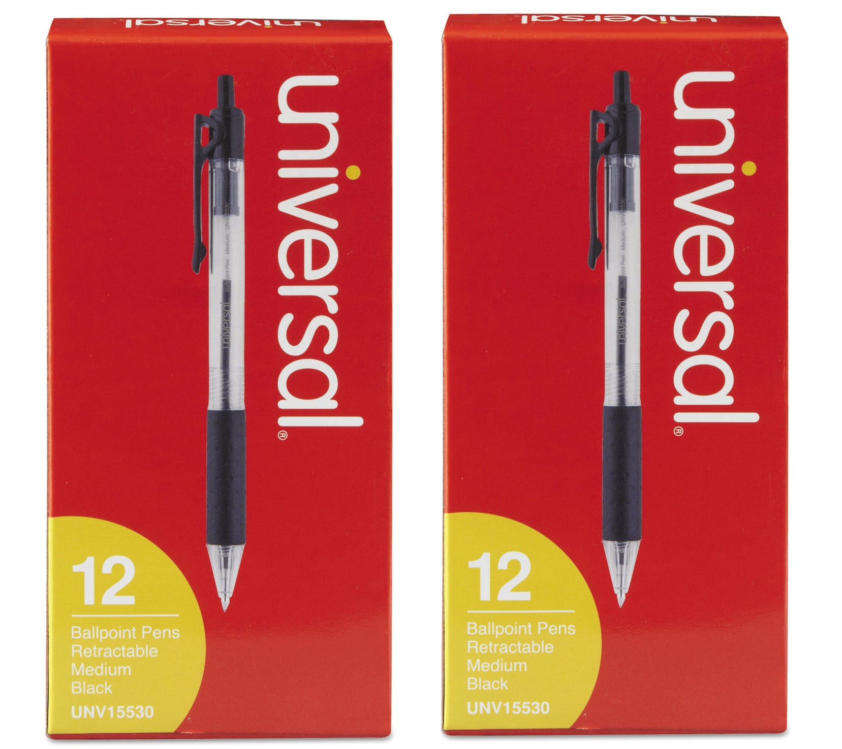 24 pcs Comfort Grip Retractable Ballpoint Pen, 1mm, Black Ink, Clear Barrel - Pack of 2
