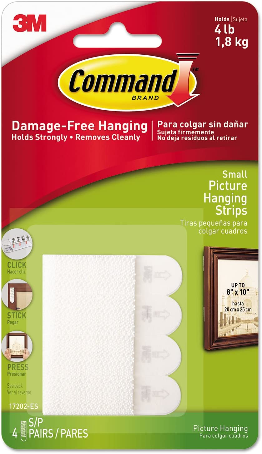 Command Picture Hanging Strips, Removable, 0.63" x 2.13", White, 4 Pairs/Pack