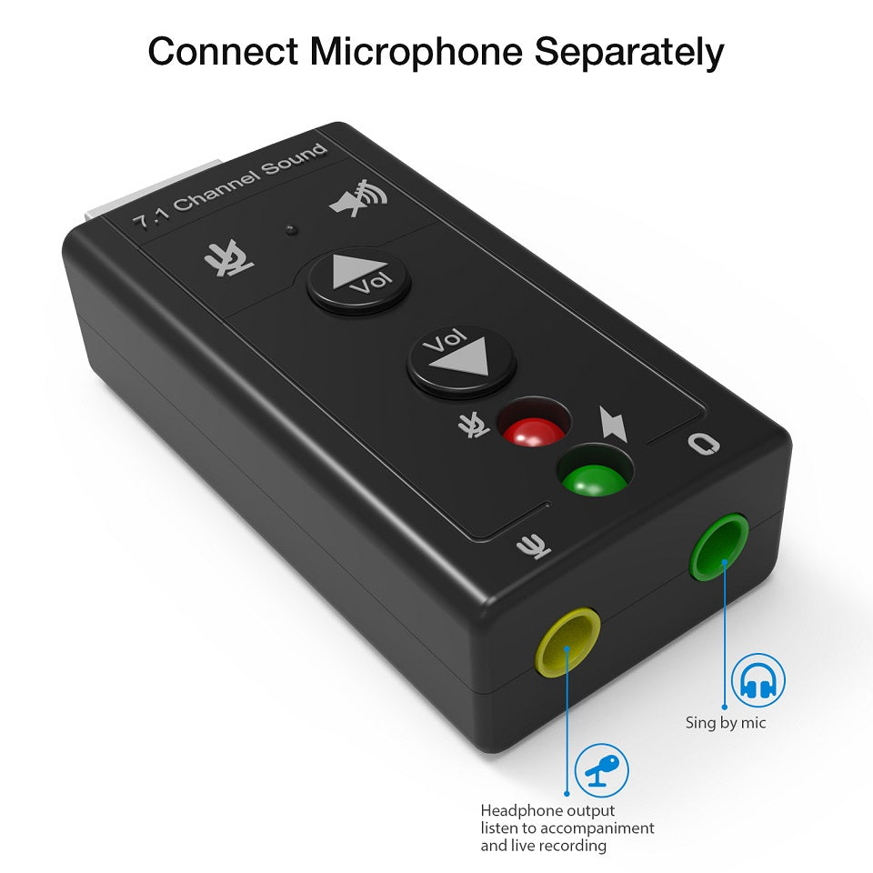 The USB 2.0 External 7.1-Channel Audio Sound Card Adapter. It can work with either desktop or laptop with the Xear 3D Sound Simulation 7.